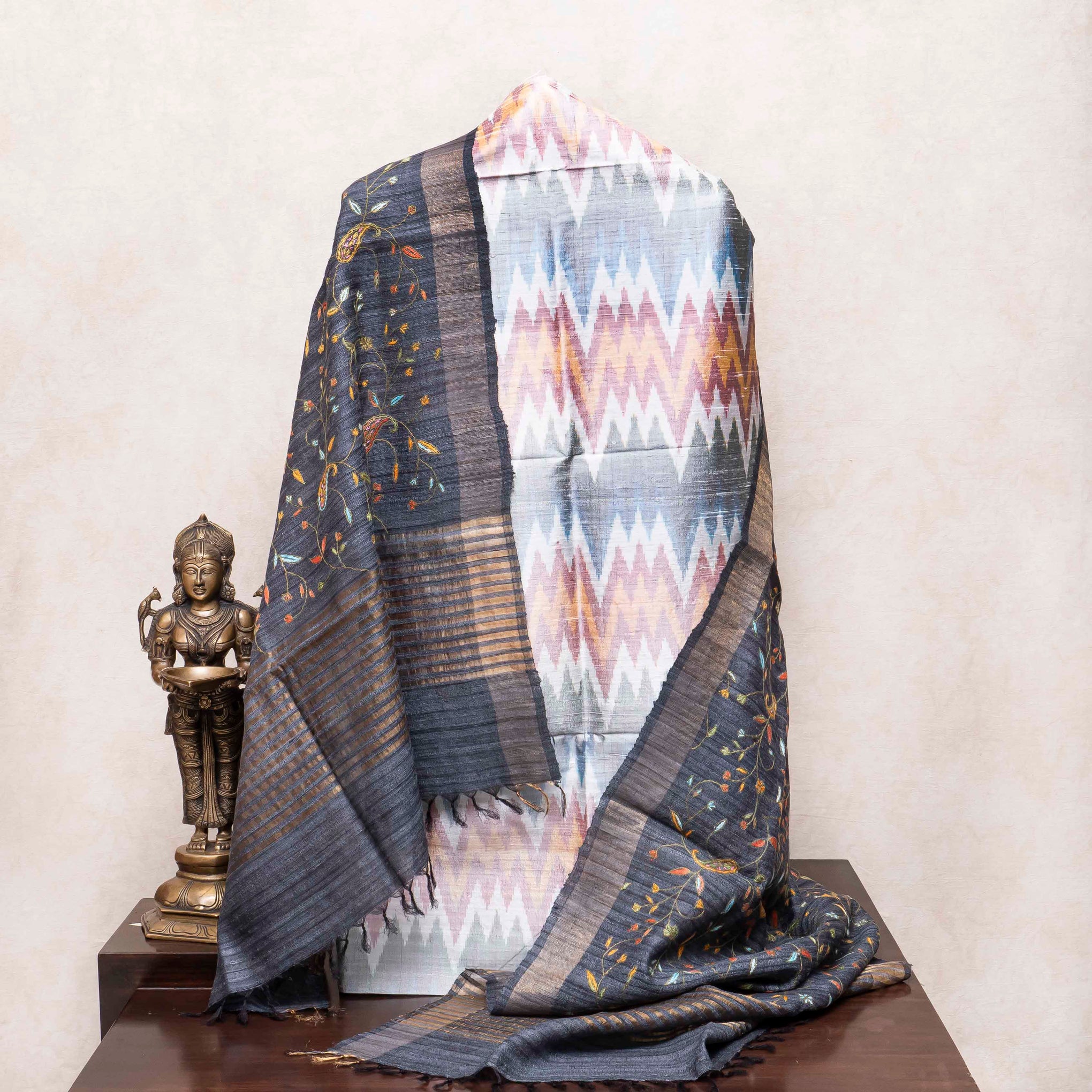 Material: Handloom Ikkat raw silk for the kurta and Handloom Tussar silk for the dupatta.