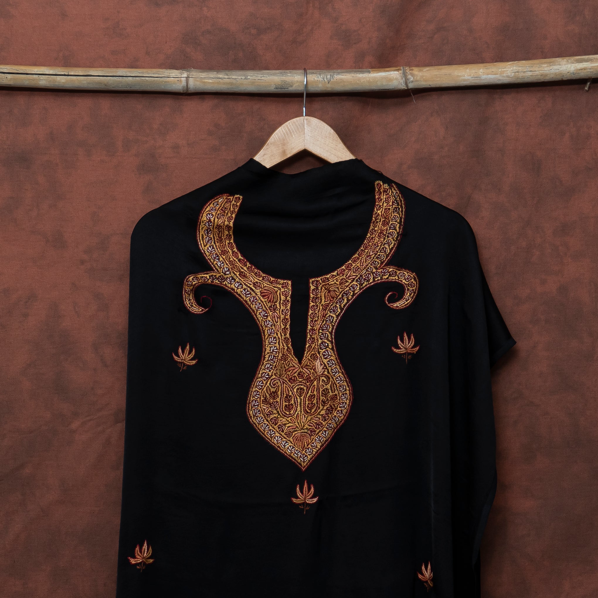 Color: A rich black base that complements the contrasting thread work, creating a regal and eye-catching appeal.