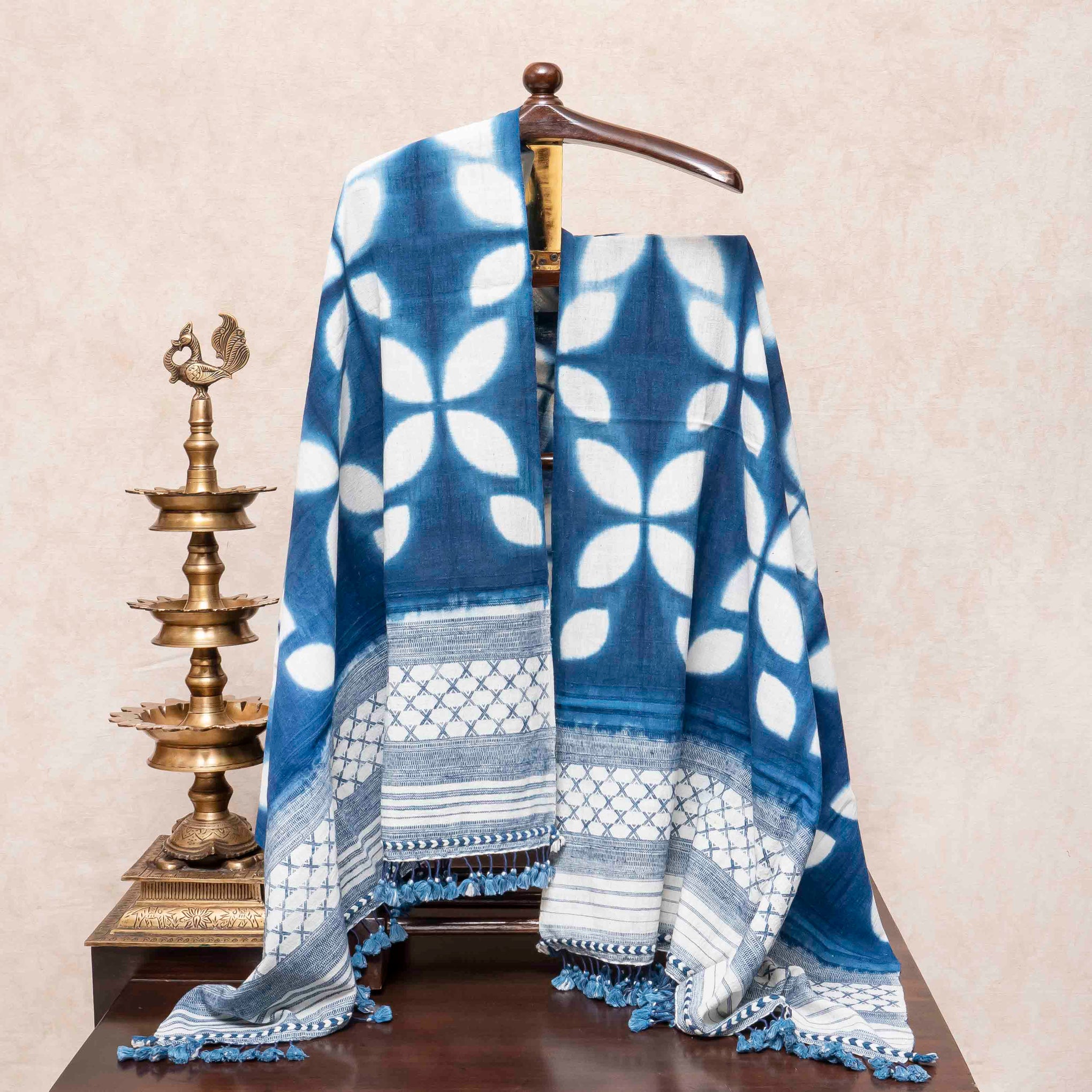 Hand Block KalamKari Kurta - Bottom Fabric With Clamp Dying Kala Cotton Dupatta