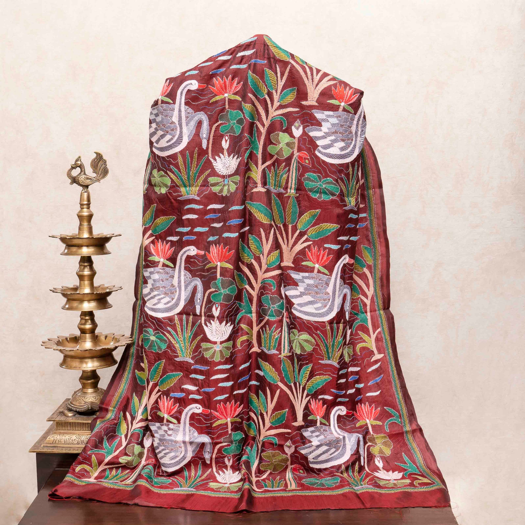 Handloom Khadi Silk Suit With Pure Silk Hand Embroidered Kantha Dupatta