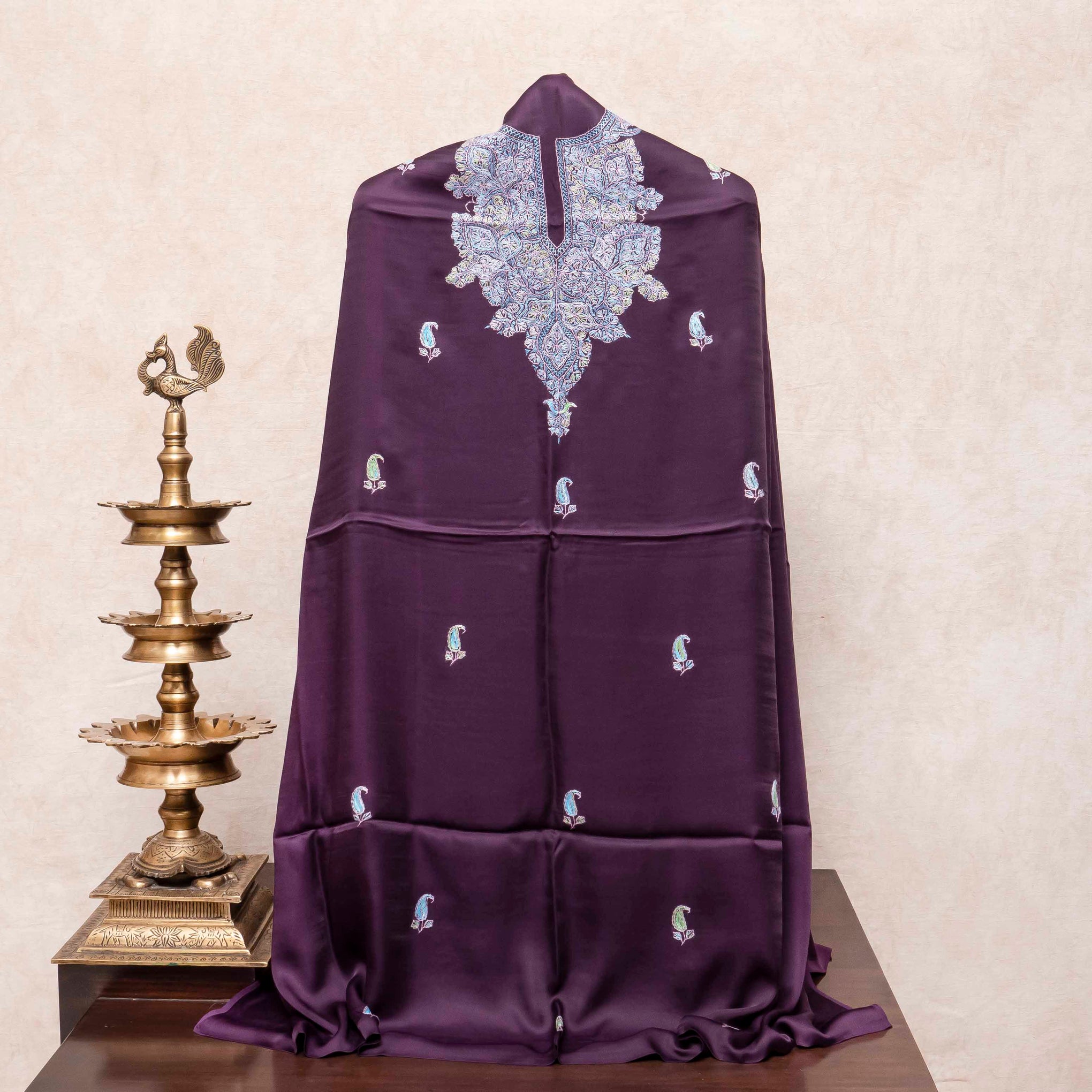 Kashmiri Hand Embroidery Modal Silk Kurta & Bottom Fabric With Kashmiri Embroidery Chanderi Silk Dupatta